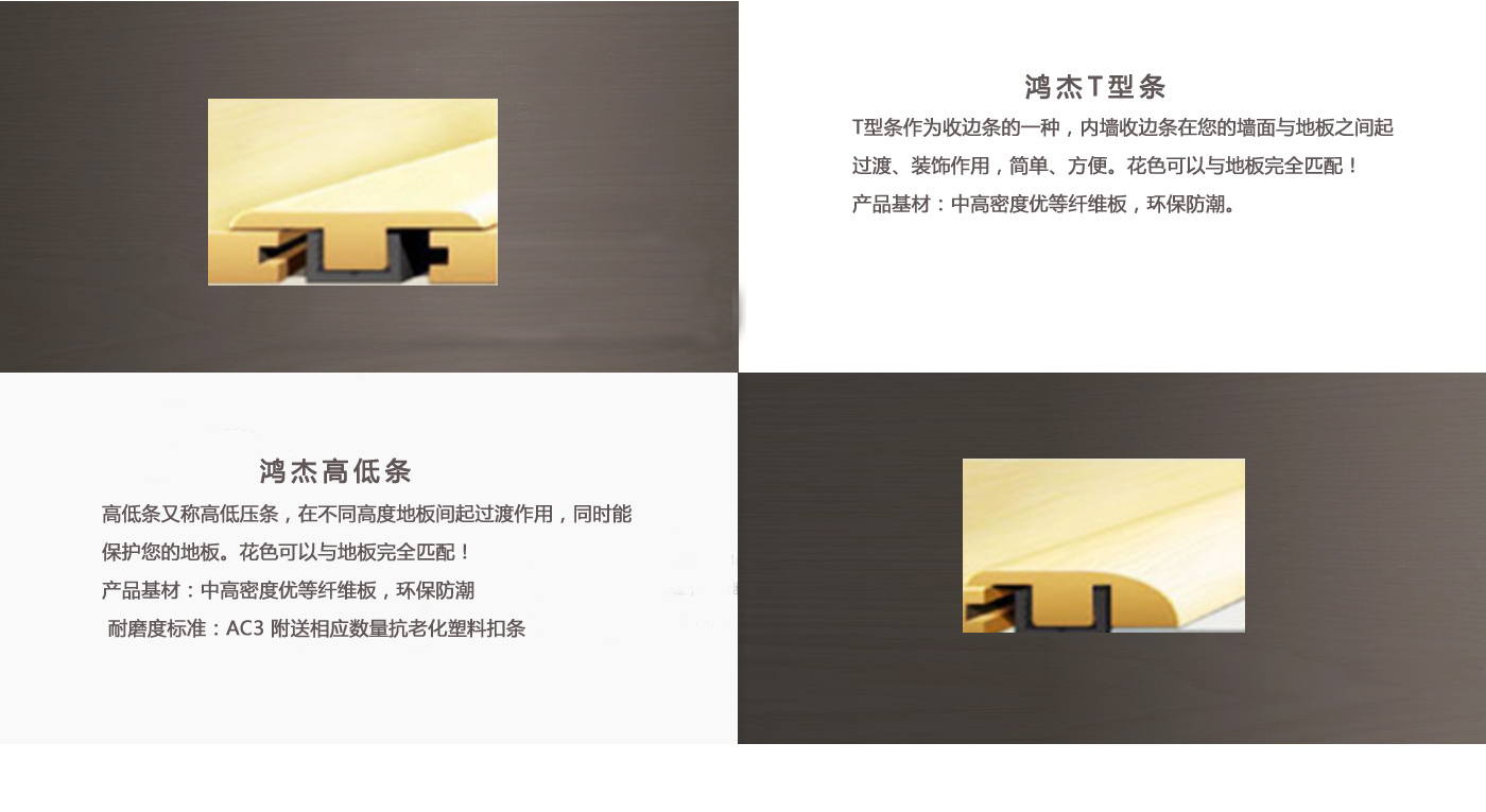 專業(yè)生產(chǎn)各類地板輔料。本廠成立于2008年,經(jīng)過嚴(yán)格的質(zhì)量控制,已開發(fā)出SPC、WPC、層壓板三種不同的壓花材料。每一種材料都有超過7種不同的過渡型材,如t型線、減速器、端蓋、四分之一圓、樓梯前鼻、樓梯板、踢腳板等。    SPC和WPC是我們的新產(chǎn)品,在世界各地越來越受歡迎。各種造型將達(dá)到您的個(gè)性化需求,100%匹配您的SPC, WPC或乙烯基地板的顏色。     我們的傳統(tǒng)產(chǎn)品——層壓板是世界領(lǐng)先的產(chǎn)品之一,具有熱壓耐磨層加工技術(shù),高溫高壓。其質(zhì)量可靠,品種齊全,經(jīng)久耐用,耐磨,使層壓板成型經(jīng)久不衰。     我公司不僅與國內(nèi)一些大型、信譽(yù)良好的地板生產(chǎn)廠家和代理商建立了長期的合作關(guān)系,產(chǎn)品還出口到臺(tái)灣、日本、菲律賓、美國、加拿大、非洲、澳大利亞、歐洲等國家和地區(qū)。 歡迎來廠參觀、洽談業(yè)務(wù)。